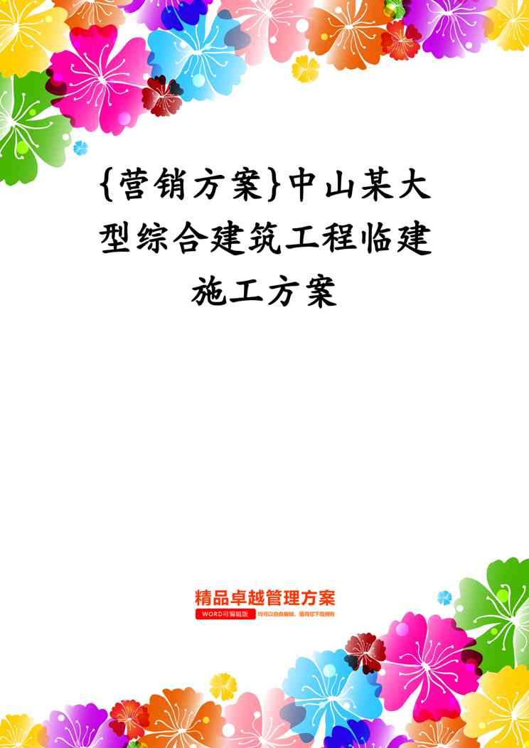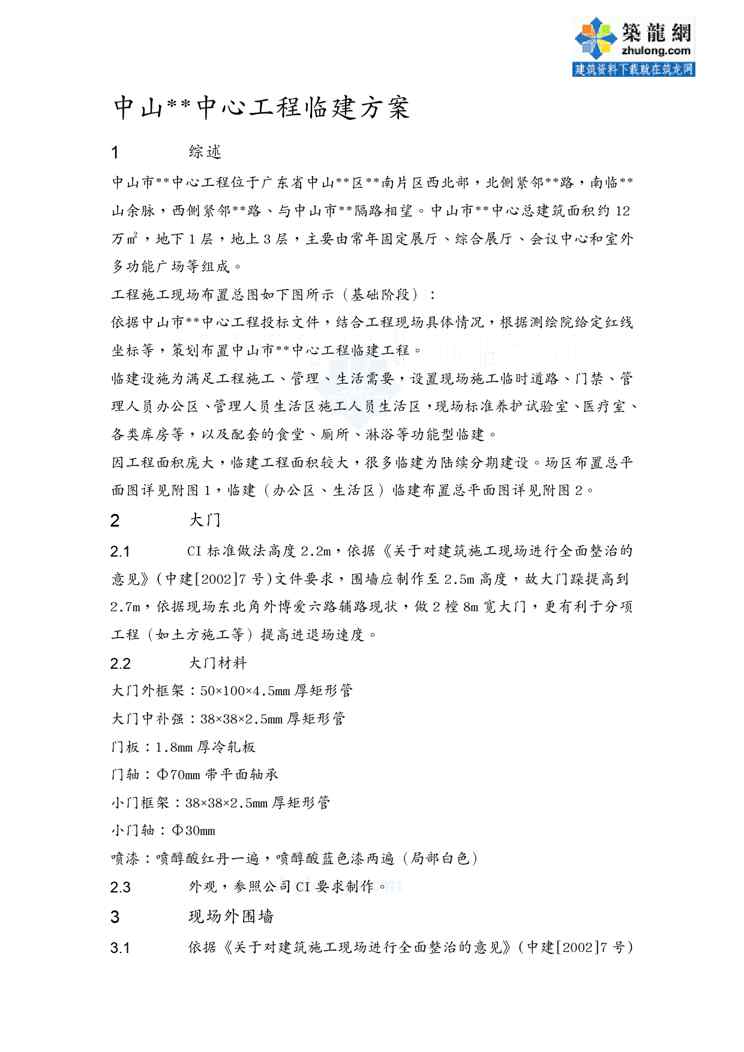 本站资深用户发布了最新的《{营销方案}中山某大型综合建筑工程临建施工方案》文档,以下内容为预览,详细内容可下载阅读。 声明:本站所有文章,如无特殊说明或标注,均为本站原创发布。任何个人或组织,在未征得本站同意时,禁止复制、盗用、采集、发布本站内容到任何网站、书籍等各类媒体平台。如若本站内容侵犯了原著者的合法权益,可联系我们进行处理。