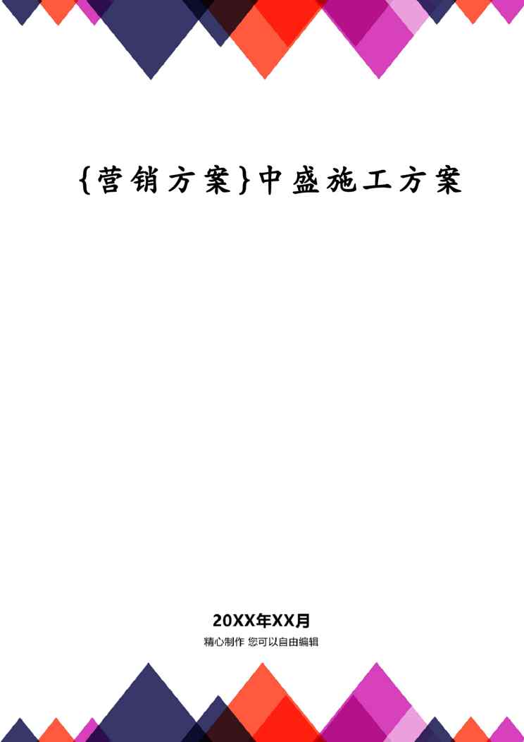 本站资深用户发布了最新的《{营销方案}中盛施工方案》文档,以下内容为预览,详细内容可下载阅读。 声明:本站所有文章,如无特殊说明或标注,均为本站原创发布。任何个人或组织,在未征得本站同意时,禁止复制、盗用、采集、发布本站内容到任何网站、书籍等各类媒体平台。如若本站内容侵犯了原著者的合法权益,可联系我们进行处理。