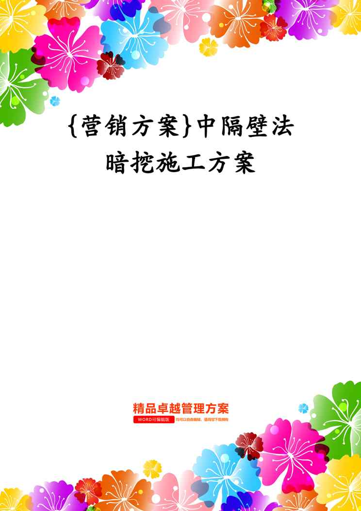 不久前,最新文档《{营销方案}中隔壁法暗挖施工方案》全文正式在本站发布,感兴趣的用户可以下载阅读。 声明:本站所有文章,如无特殊说明或标注,均为本站原创发布。任何个人或组织,在未征得本站同意时,禁止复制、盗用、采集、发布本站内容到任何网站、书籍等各类媒体平台。如若本站内容侵犯了原著者的合法权益,可联系我们进行处理。