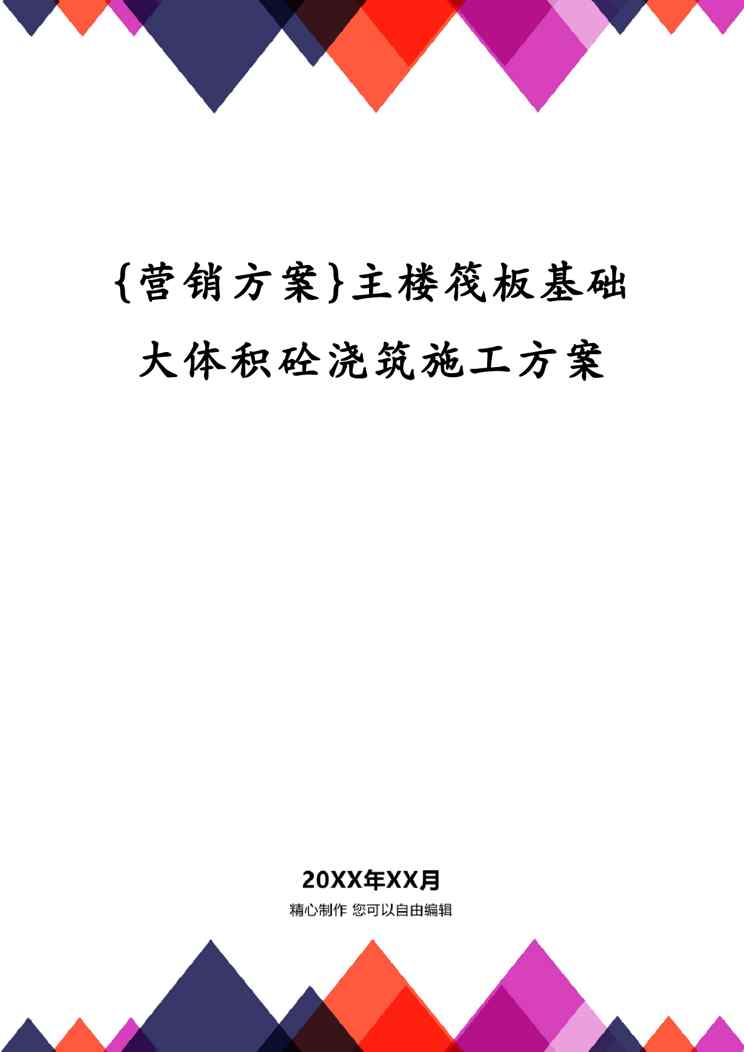 不久前,最新文档《{营销方案}主楼筏板基础大体积砼浇筑施工方案》全文正式在本站发布,感兴趣的用户可以下载阅读。 声明:本站所有文章,如无特殊说明或标注,均为本站原创发布。任何个人或组织,在未征得本站同意时,禁止复制、盗用、采集、发布本站内容到任何网站、书籍等各类媒体平台。如若本站内容侵犯了原著者的合法权益,可联系我们进行处理。