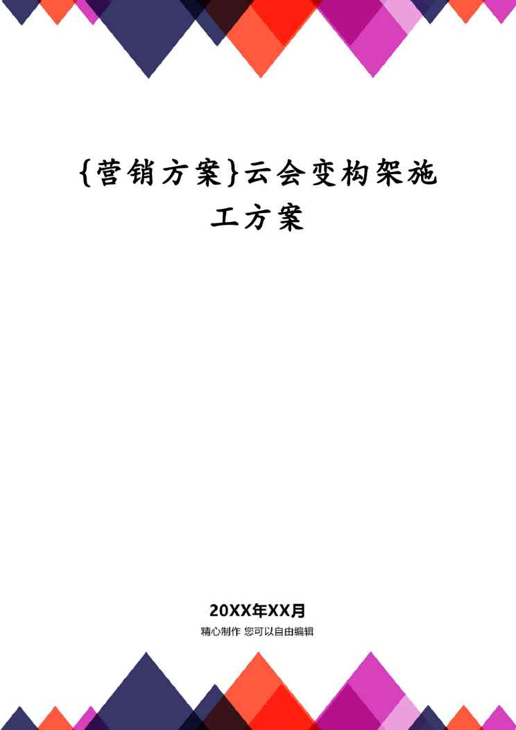 不久前,最新文档《{营销方案}云会变构架施工方案》全文正式在本站发布,感兴趣的用户可以下载阅读。 声明:本站所有文章,如无特殊说明或标注,均为本站原创发布。任何个人或组织,在未征得本站同意时,禁止复制、盗用、采集、发布本站内容到任何网站、书籍等各类媒体平台。如若本站内容侵犯了原著者的合法权益,可联系我们进行处理。