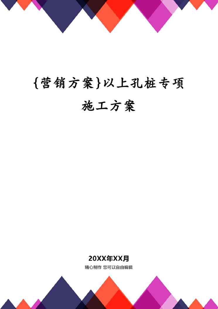不久前,最新文档《{营销方案}以上孔桩专项施工方案》全文正式在本站发布,感兴趣的用户可以下载阅读。 声明:本站所有文章,如无特殊说明或标注,均为本站原创发布。任何个人或组织,在未征得本站同意时,禁止复制、盗用、采集、发布本站内容到任何网站、书籍等各类媒体平台。如若本站内容侵犯了原著者的合法权益,可联系我们进行处理。