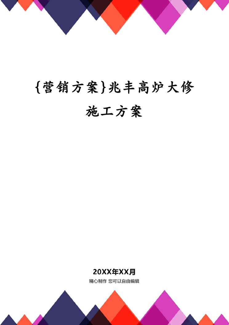 本站资深用户发布了最新的《{营销方案}兆丰高炉大修施工方案》文档,以下内容为预览,详细内容可下载阅读。 声明:本站所有文章,如无特殊说明或标注,均为本站原创发布。任何个人或组织,在未征得本站同意时,禁止复制、盗用、采集、发布本站内容到任何网站、书籍等各类媒体平台。如若本站内容侵犯了原著者的合法权益,可联系我们进行处理。