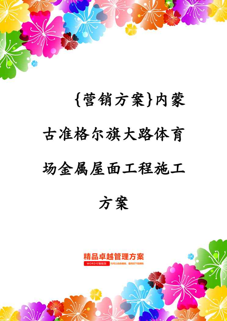 本站资深用户发布了最新的《{营销方案}内蒙古准格尔旗大路体育场金属屋面工程施工方案》文档,以下内容为预览,详细内容可下载阅读。 声明:本站所有文章,如无特殊说明或标注,均为本站原创发布。任何个人或组织,在未征得本站同意时,禁止复制、盗用、采集、发布本站内容到任何网站、书籍等各类媒体平台。如若本站内容侵犯了原著者的合法权益,可联系我们进行处理。