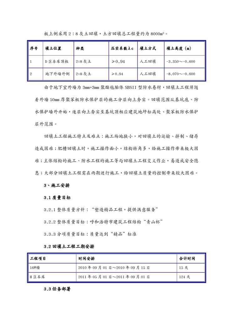 本站资深用户发布了最新的《{营销方案}内蒙古回填土施工方案》文档,以下内容为预览,详细内容可下载阅读。 声明:本站所有文章,如无特殊说明或标注,均为本站原创发布。任何个人或组织,在未征得本站同意时,禁止复制、盗用、采集、发布本站内容到任何网站、书籍等各类媒体平台。如若本站内容侵犯了原著者的合法权益,可联系我们进行处理。