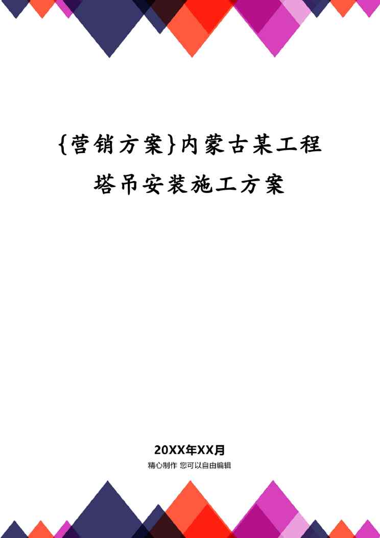 不久前,最新文档《{营销方案}内蒙古某工程塔吊安装施工方案》全文正式在本站发布,感兴趣的用户可以下载阅读。 声明:本站所有文章,如无特殊说明或标注,均为本站原创发布。任何个人或组织,在未征得本站同意时,禁止复制、盗用、采集、发布本站内容到任何网站、书籍等各类媒体平台。如若本站内容侵犯了原著者的合法权益,可联系我们进行处理。