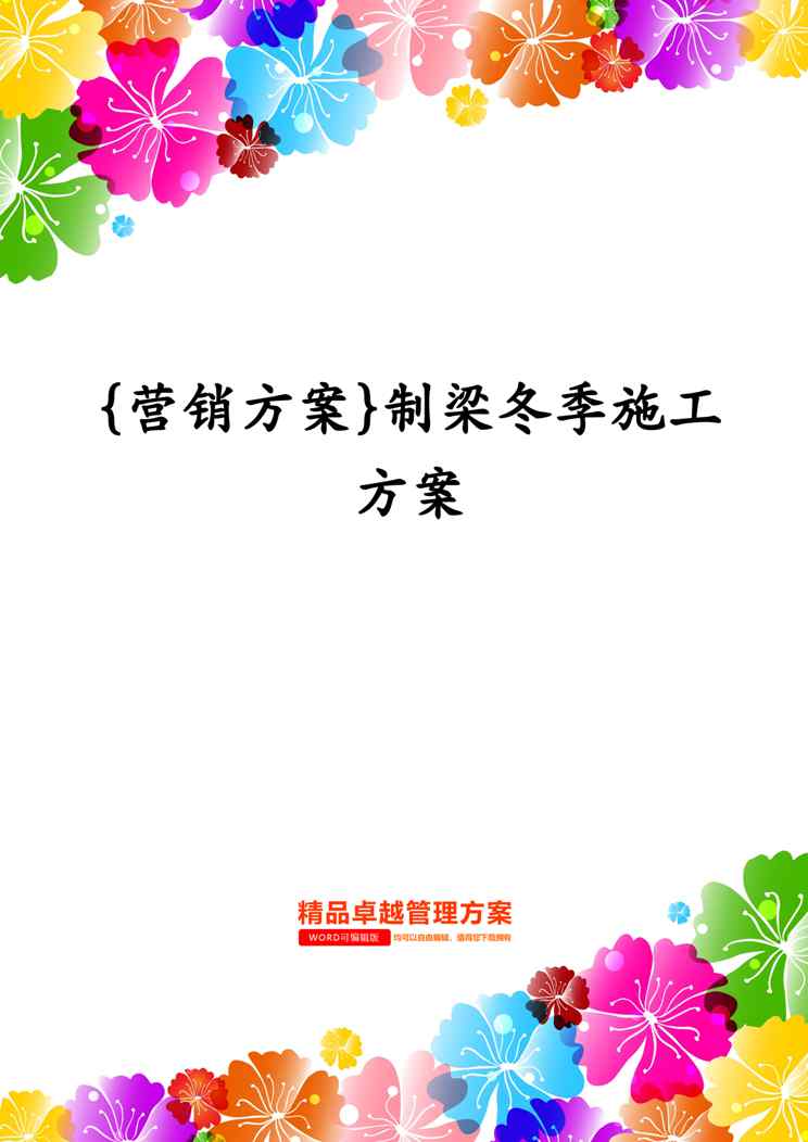 不久前,最新文档《{营销方案}制梁冬季施工方案》全文正式在本站发布,感兴趣的用户可以下载阅读。 声明:本站所有文章,如无特殊说明或标注,均为本站原创发布。任何个人或组织,在未征得本站同意时,禁止复制、盗用、采集、发布本站内容到任何网站、书籍等各类媒体平台。如若本站内容侵犯了原著者的合法权益,可联系我们进行处理。
