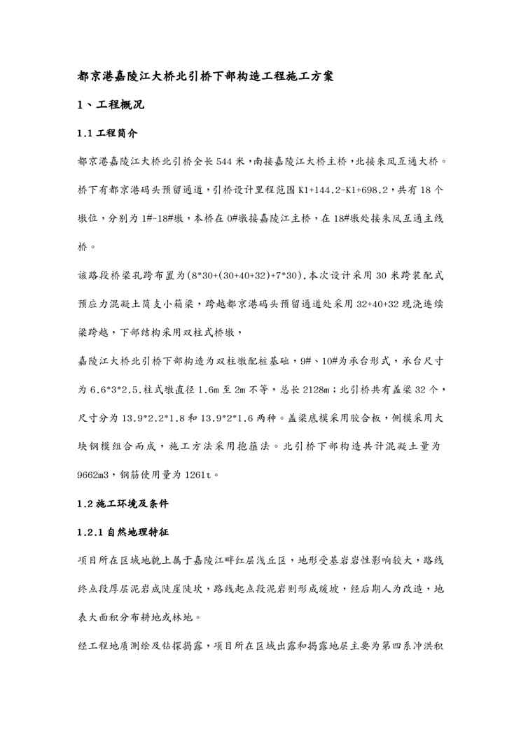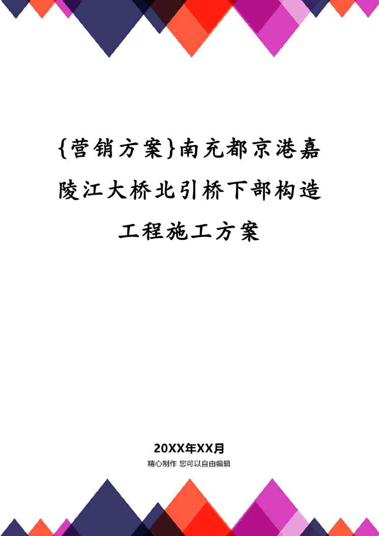 本站资深用户发布了最新的《{营销方案}南充都京港嘉陵江大桥北引桥下部构造工程施工方案》文档,以下内容为预览,详细内容可下载阅读。 声明:本站所有文章,如无特殊说明或标注,均为本站原创发布。任何个人或组织,在未征得本站同意时,禁止复制、盗用、采集、发布本站内容到任何网站、书籍等各类媒体平台。如若本站内容侵犯了原著者的合法权益,可联系我们进行处理。