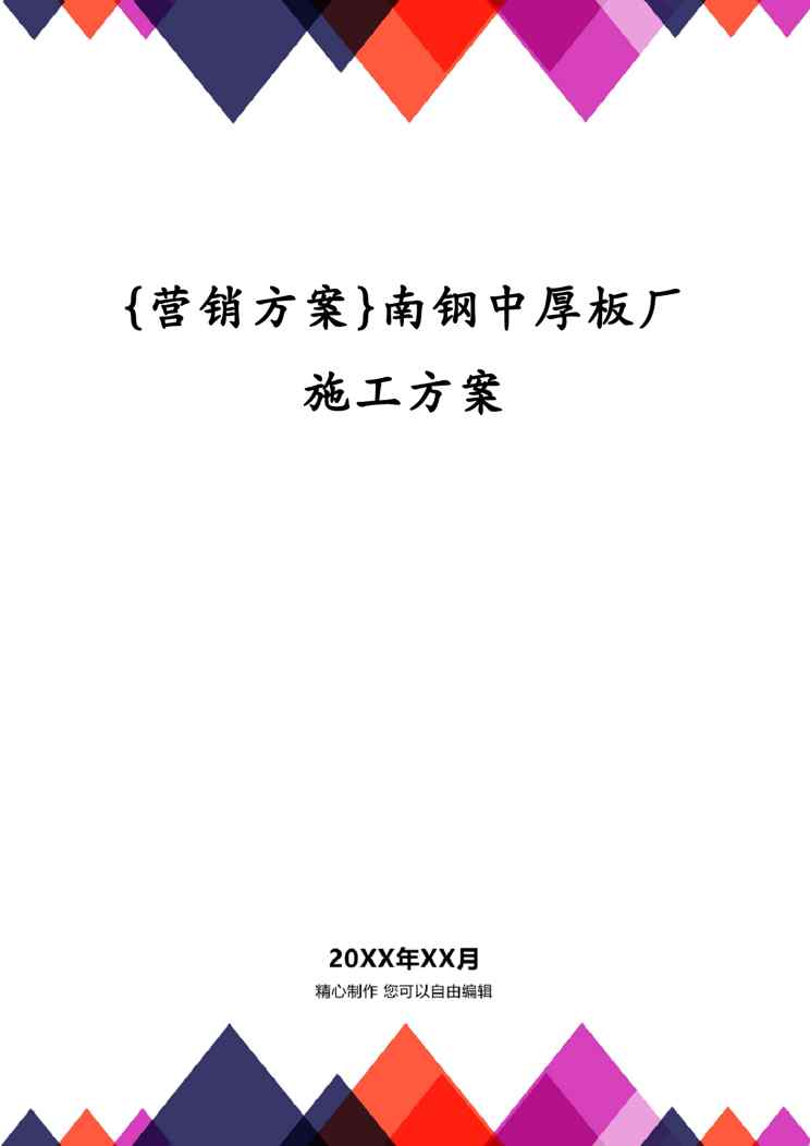 本站正式发布了《{营销方案}南钢中厚板厂施工方案》文档,文档详细内容可下载阅读。 声明:本站所有文章,如无特殊说明或标注,均为本站原创发布。任何个人或组织,在未征得本站同意时,禁止复制、盗用、采集、发布本站内容到任何网站、书籍等各类媒体平台。如若本站内容侵犯了原著者的合法权益,可联系我们进行处理。