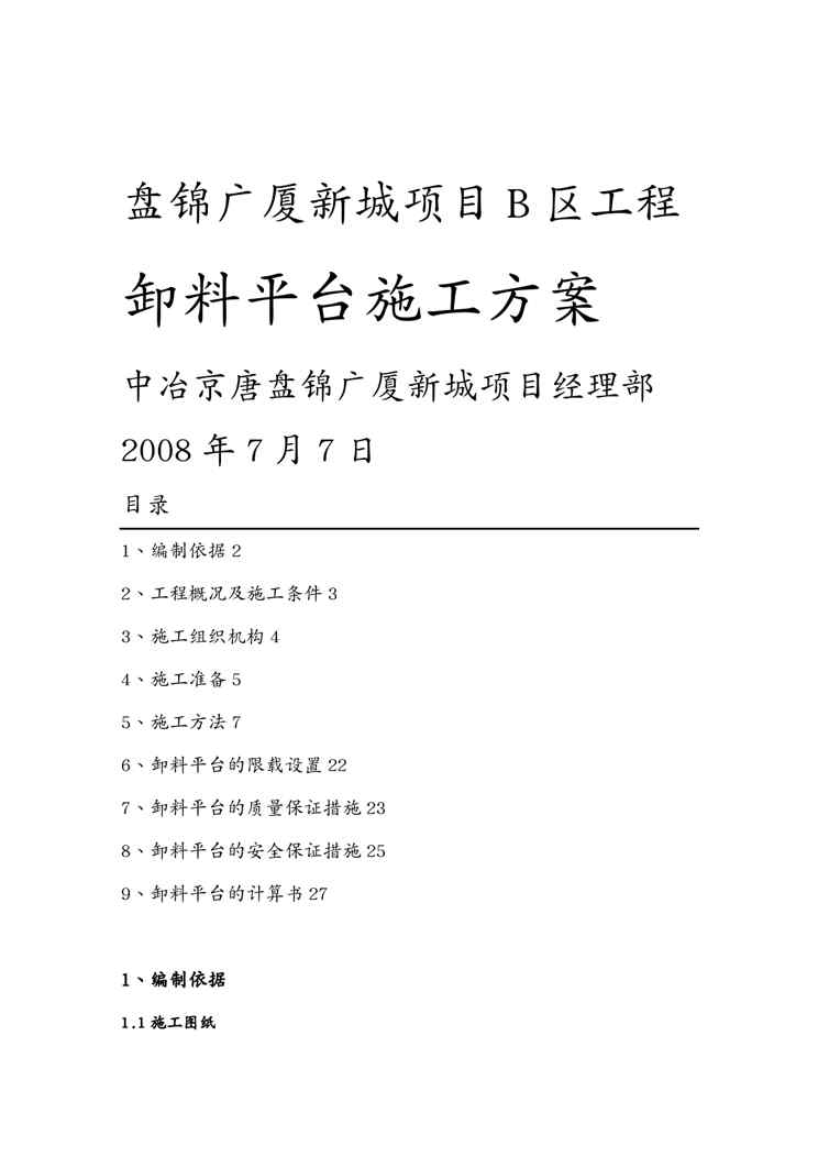 本站资深用户发布了最新的《{营销方案}卸料平台施工方案审最终版》文档,以下内容为预览,详细内容可下载阅读。 声明:本站所有文章,如无特殊说明或标注,均为本站原创发布。任何个人或组织,在未征得本站同意时,禁止复制、盗用、采集、发布本站内容到任何网站、书籍等各类媒体平台。如若本站内容侵犯了原著者的合法权益,可联系我们进行处理。