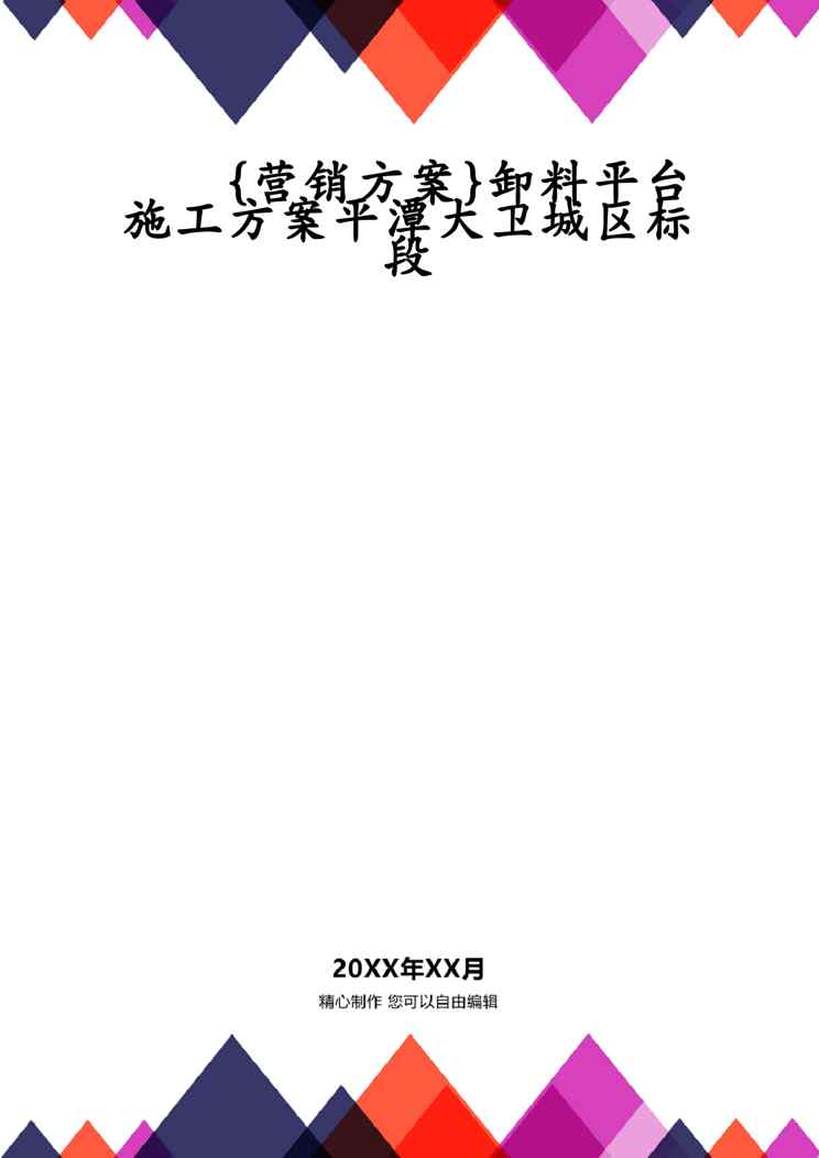 本站正式发布了《{营销方案}卸料平台施工方案平潭大卫城区标段》文档,文档详细内容可下载阅读。 声明:本站所有文章,如无特殊说明或标注,均为本站原创发布。任何个人或组织,在未征得本站同意时,禁止复制、盗用、采集、发布本站内容到任何网站、书籍等各类媒体平台。如若本站内容侵犯了原著者的合法权益,可联系我们进行处理。