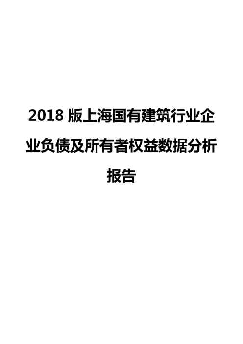 本站资深用户发布了最新的《2018版上海国有建筑行业企业负债及所有者权益数据分析报告》文档,以下内容为预览,详细内容可下载阅读。 声明:本站所有文章,如无特殊说明或标注,均为本站原创发布。任何个人或组织,在未征得本站同意时,禁止复制、盗用、采集、发布本站内容到任何网站、书籍等各类媒体平台。如若本站内容侵犯了原著者的合法权益,可联系我们进行处理。