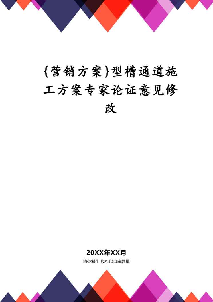 不久前,最新文档《{营销方案}型槽通道施工方案专家论证意见修改》全文正式在本站发布,感兴趣的用户可以下载阅读。 声明:本站所有文章,如无特殊说明或标注,均为本站原创发布。任何个人或组织,在未征得本站同意时,禁止复制、盗用、采集、发布本站内容到任何网站、书籍等各类媒体平台。如若本站内容侵犯了原著者的合法权益,可联系我们进行处理。