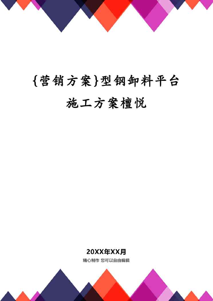 不久前,最新文档《{营销方案}型钢卸料平台施工方案檀悦》全文正式在本站发布,感兴趣的用户可以下载阅读。 声明:本站所有文章,如无特殊说明或标注,均为本站原创发布。任何个人或组织,在未征得本站同意时,禁止复制、盗用、采集、发布本站内容到任何网站、书籍等各类媒体平台。如若本站内容侵犯了原著者的合法权益,可联系我们进行处理。
