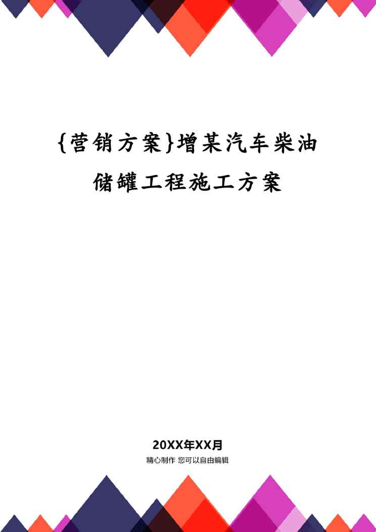 本站资深用户发布了最新的《{营销方案}增某汽车柴油储罐工程施工方案》文档,以下内容为预览,详细内容可下载阅读。 声明:本站所有文章,如无特殊说明或标注,均为本站原创发布。任何个人或组织,在未征得本站同意时,禁止复制、盗用、采集、发布本站内容到任何网站、书籍等各类媒体平台。如若本站内容侵犯了原著者的合法权益,可联系我们进行处理。