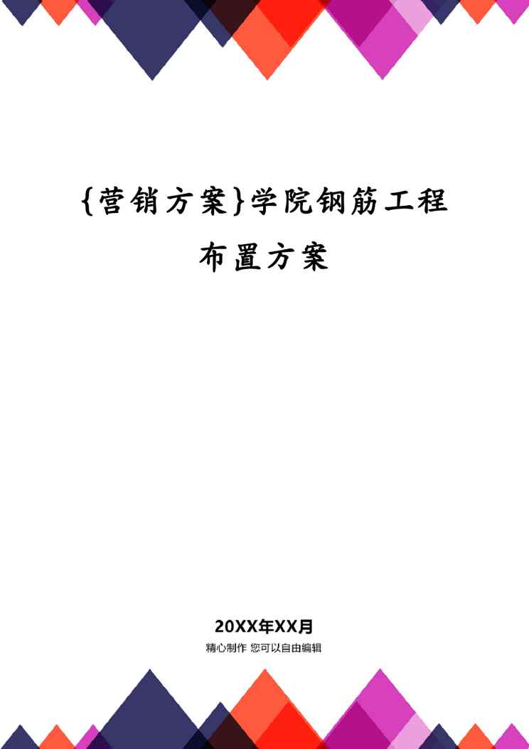 不久前,最新文档《{营销方案}学院钢筋工程布置方案》全文正式在本站发布,感兴趣的用户可以下载阅读。 声明:本站所有文章,如无特殊说明或标注,均为本站原创发布。任何个人或组织,在未征得本站同意时,禁止复制、盗用、采集、发布本站内容到任何网站、书籍等各类媒体平台。如若本站内容侵犯了原著者的合法权益,可联系我们进行处理。