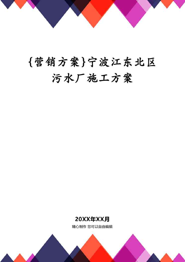 本站正式发布了《{营销方案}宁波江东北区污水厂施工方案》文档,文档详细内容可下载阅读。 声明:本站所有文章,如无特殊说明或标注,均为本站原创发布。任何个人或组织,在未征得本站同意时,禁止复制、盗用、采集、发布本站内容到任何网站、书籍等各类媒体平台。如若本站内容侵犯了原著者的合法权益,可联系我们进行处理。