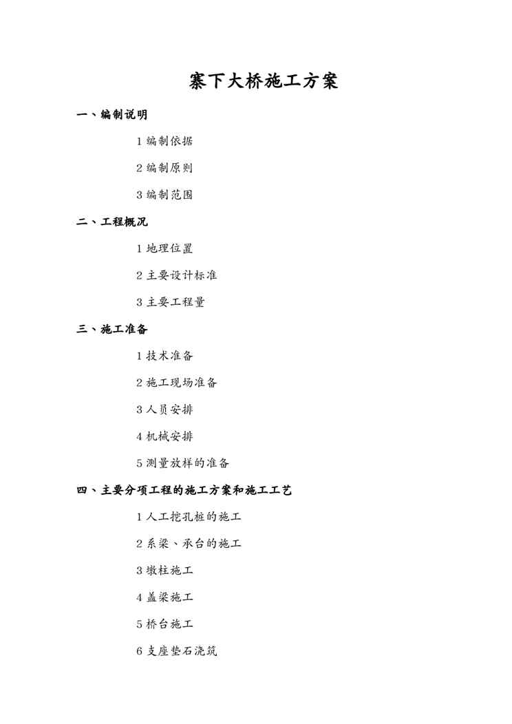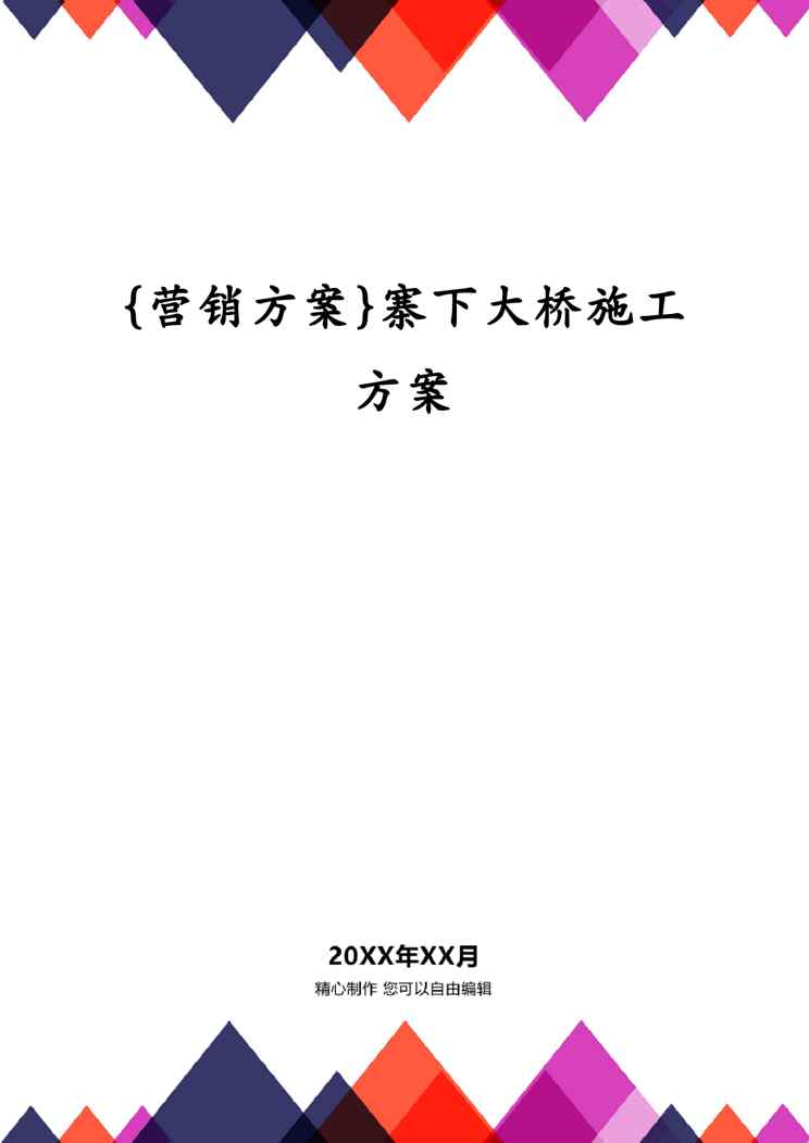 本站资深用户发布了最新的《{营销方案}寨下大桥施工方案》文档,以下内容为预览,详细内容可下载阅读。 声明:本站所有文章,如无特殊说明或标注,均为本站原创发布。任何个人或组织,在未征得本站同意时,禁止复制、盗用、采集、发布本站内容到任何网站、书籍等各类媒体平台。如若本站内容侵犯了原著者的合法权益,可联系我们进行处理。