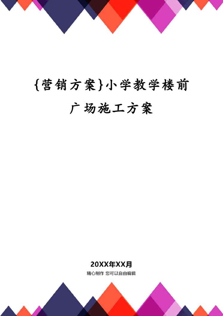 本站正式发布了《{营销方案}小学教学楼前广场施工方案》文档,文档详细内容可下载阅读。 声明:本站所有文章,如无特殊说明或标注,均为本站原创发布。任何个人或组织,在未征得本站同意时,禁止复制、盗用、采集、发布本站内容到任何网站、书籍等各类媒体平台。如若本站内容侵犯了原著者的合法权益,可联系我们进行处理。