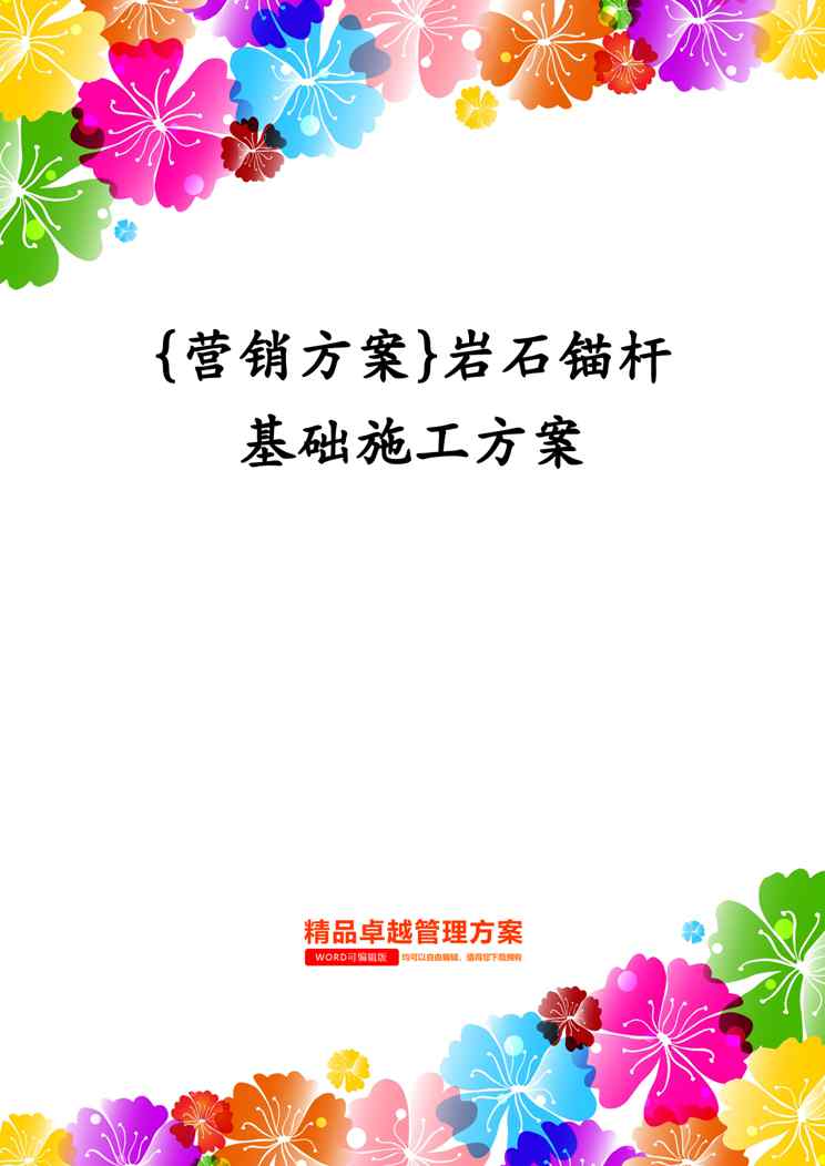 不久前,最新文档《{营销方案}岩石锚杆基础施工方案》全文正式在本站发布,感兴趣的用户可以下载阅读。 声明:本站所有文章,如无特殊说明或标注,均为本站原创发布。任何个人或组织,在未征得本站同意时,禁止复制、盗用、采集、发布本站内容到任何网站、书籍等各类媒体平台。如若本站内容侵犯了原著者的合法权益,可联系我们进行处理。