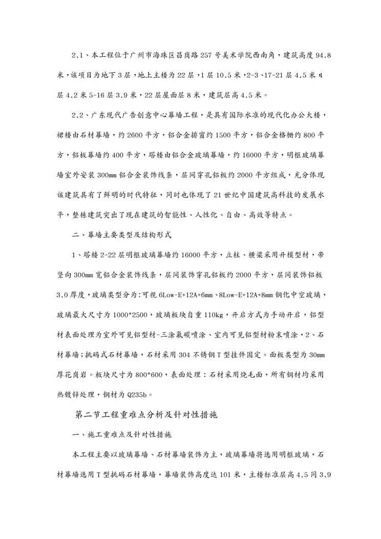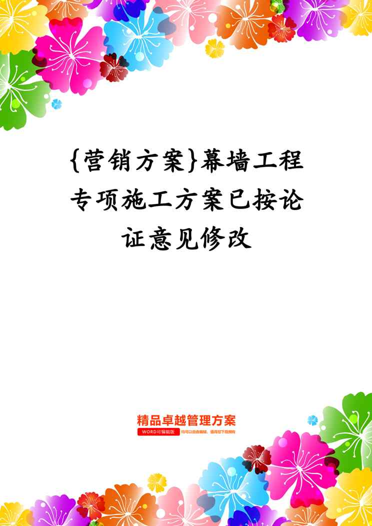 本站资深用户发布了最新的《{营销方案}幕墙工程专项施工方案已按论证意见修改》文档,以下内容为预览,详细内容可下载阅读。 声明:本站所有文章,如无特殊说明或标注,均为本站原创发布。任何个人或组织,在未征得本站同意时,禁止复制、盗用、采集、发布本站内容到任何网站、书籍等各类媒体平台。如若本站内容侵犯了原著者的合法权益,可联系我们进行处理。
