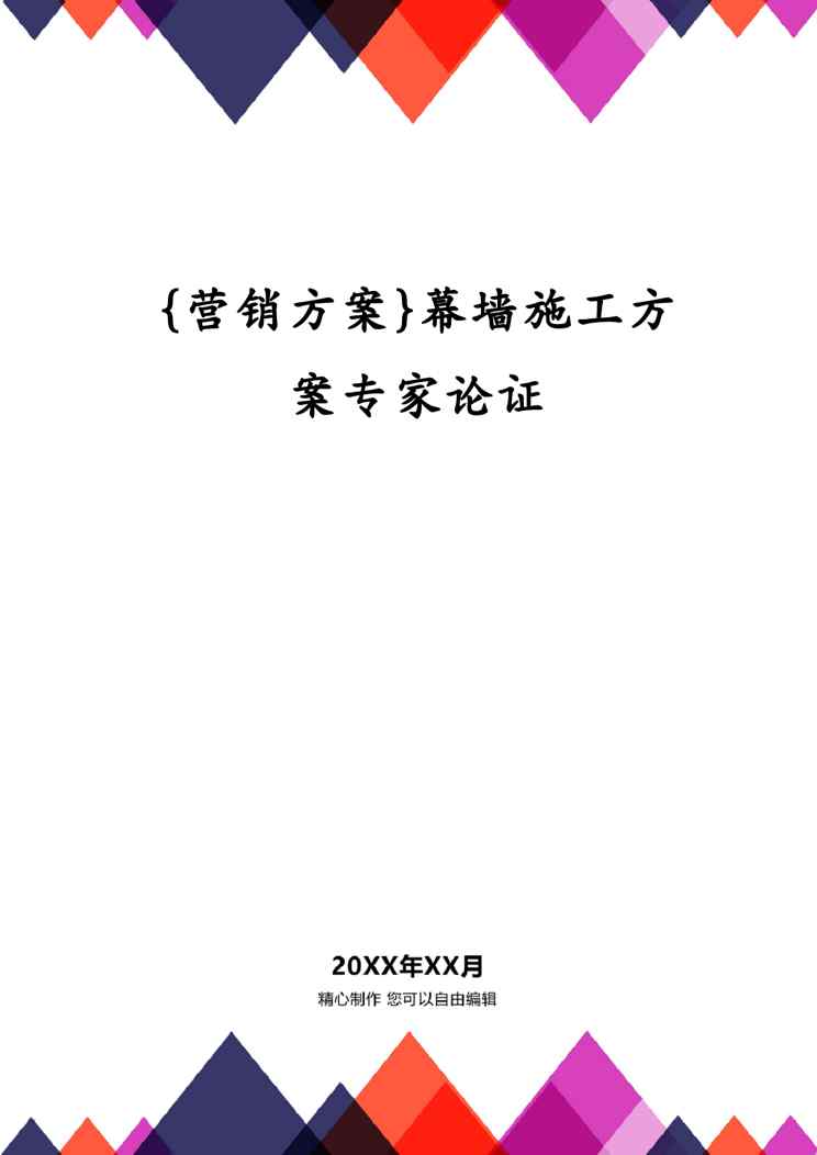 本站资深用户发布了最新的《{营销方案}幕墙施工方案专家论证》文档,以下内容为预览,详细内容可下载阅读。 声明:本站所有文章,如无特殊说明或标注,均为本站原创发布。任何个人或组织,在未征得本站同意时,禁止复制、盗用、采集、发布本站内容到任何网站、书籍等各类媒体平台。如若本站内容侵犯了原著者的合法权益,可联系我们进行处理。
