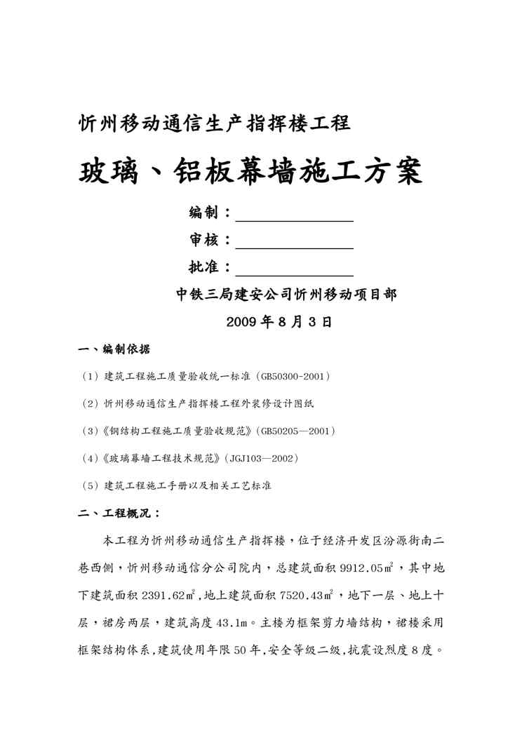 本站资深用户发布了最新的《{营销方案}忻州移动外墙幕墙施工方案》文档,以下内容为预览,详细内容可下载阅读。 声明:本站所有文章,如无特殊说明或标注,均为本站原创发布。任何个人或组织,在未征得本站同意时,禁止复制、盗用、采集、发布本站内容到任何网站、书籍等各类媒体平台。如若本站内容侵犯了原著者的合法权益,可联系我们进行处理。
