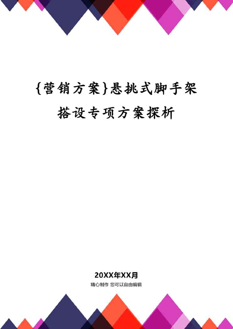 本站资深用户发布了最新的《{营销方案}悬挑式脚手架搭设专项方案探析》文档,以下内容为预览,详细内容可下载阅读。 声明:本站所有文章,如无特殊说明或标注,均为本站原创发布。任何个人或组织,在未征得本站同意时,禁止复制、盗用、采集、发布本站内容到任何网站、书籍等各类媒体平台。如若本站内容侵犯了原著者的合法权益,可联系我们进行处理。