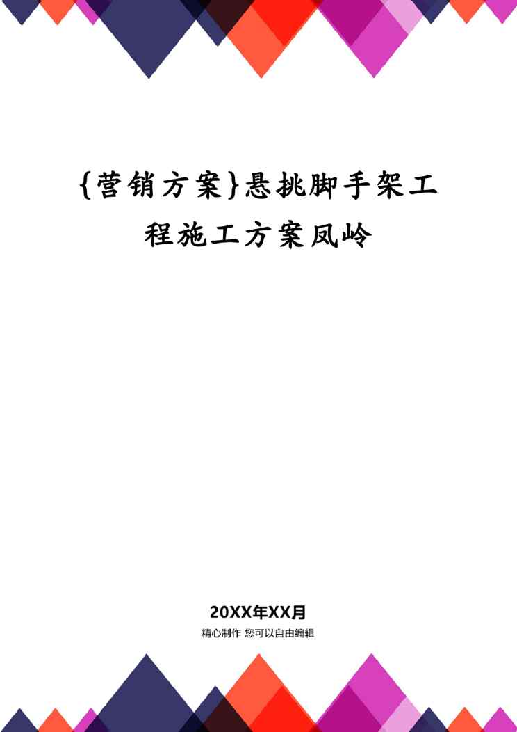 本站正式发布了《{营销方案}悬挑脚手架工程施工方案凤岭》文档,文档详细内容可下载阅读。 声明:本站所有文章,如无特殊说明或标注,均为本站原创发布。任何个人或组织,在未征得本站同意时,禁止复制、盗用、采集、发布本站内容到任何网站、书籍等各类媒体平台。如若本站内容侵犯了原著者的合法权益,可联系我们进行处理。