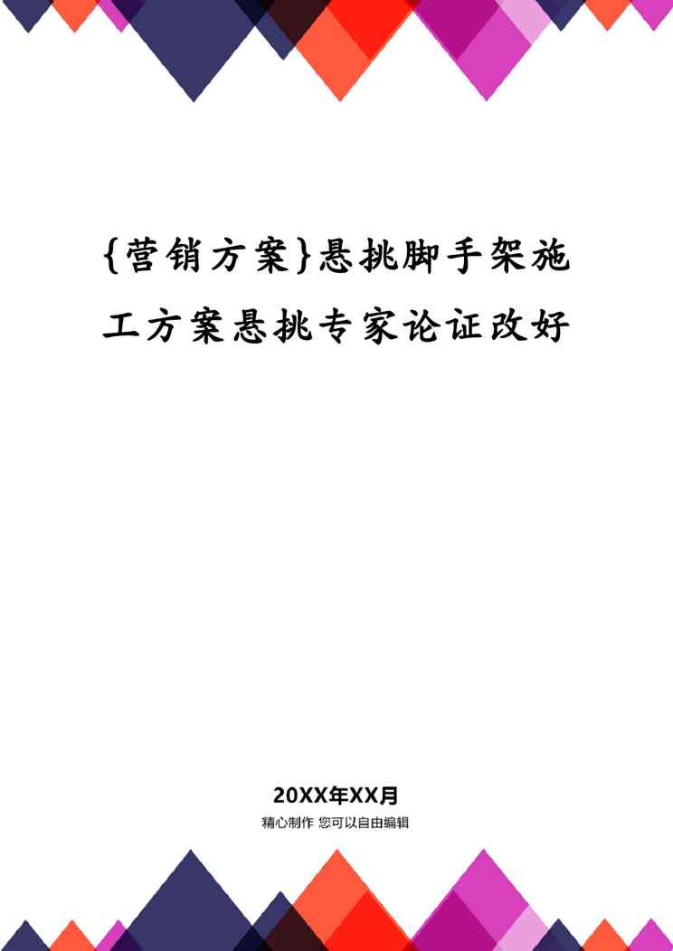 不久前,最新文档《{营销方案}悬挑脚手架施工方案悬挑专家论证改好》全文正式在本站发布,感兴趣的用户可以下载阅读。 声明:本站所有文章,如无特殊说明或标注,均为本站原创发布。任何个人或组织,在未征得本站同意时,禁止复制、盗用、采集、发布本站内容到任何网站、书籍等各类媒体平台。如若本站内容侵犯了原著者的合法权益,可联系我们进行处理。