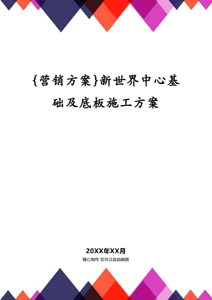本站正式发布了《{营销方案}新世界中心基础及底板施工方案》文档,文档详细内容可下载阅读。 声明:本站所有文章,如无特殊说明或标注,均为本站原创发布。任何个人或组织,在未征得本站同意时,禁止复制、盗用、采集、发布本站内容到任何网站、书籍等各类媒体平台。如若本站内容侵犯了原著者的合法权益,可联系我们进行处理。