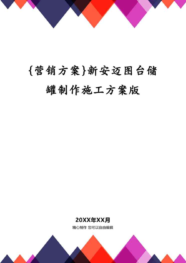 不久前,最新文档《{营销方案}新安迈图台储罐制作施工方案版》全文正式在本站发布,感兴趣的用户可以下载阅读。 声明:本站所有文章,如无特殊说明或标注,均为本站原创发布。任何个人或组织,在未征得本站同意时,禁止复制、盗用、采集、发布本站内容到任何网站、书籍等各类媒体平台。如若本站内容侵犯了原著者的合法权益,可联系我们进行处理。