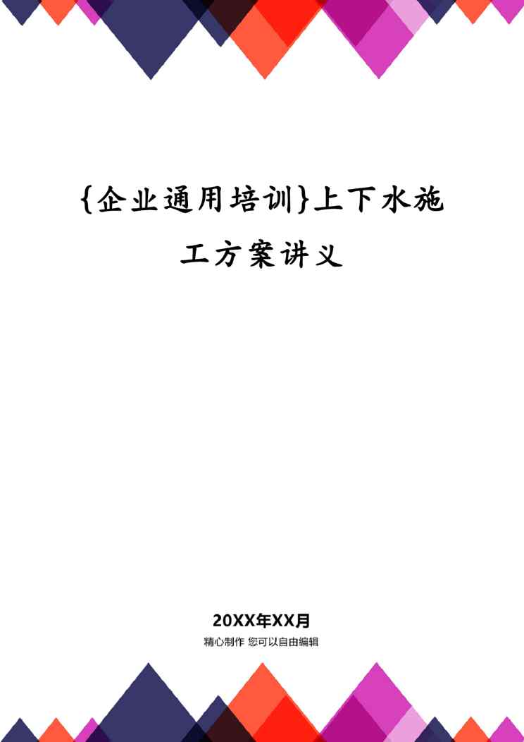 不久前,最新文档《{企业通用培训}上下水施工方案讲义》全文正式在本站发布,感兴趣的用户可以下载阅读。 声明:本站所有文章,如无特殊说明或标注,均为本站原创发布。任何个人或组织,在未征得本站同意时,禁止复制、盗用、采集、发布本站内容到任何网站、书籍等各类媒体平台。如若本站内容侵犯了原著者的合法权益,可联系我们进行处理。