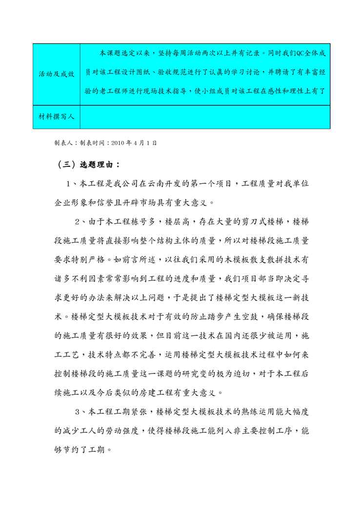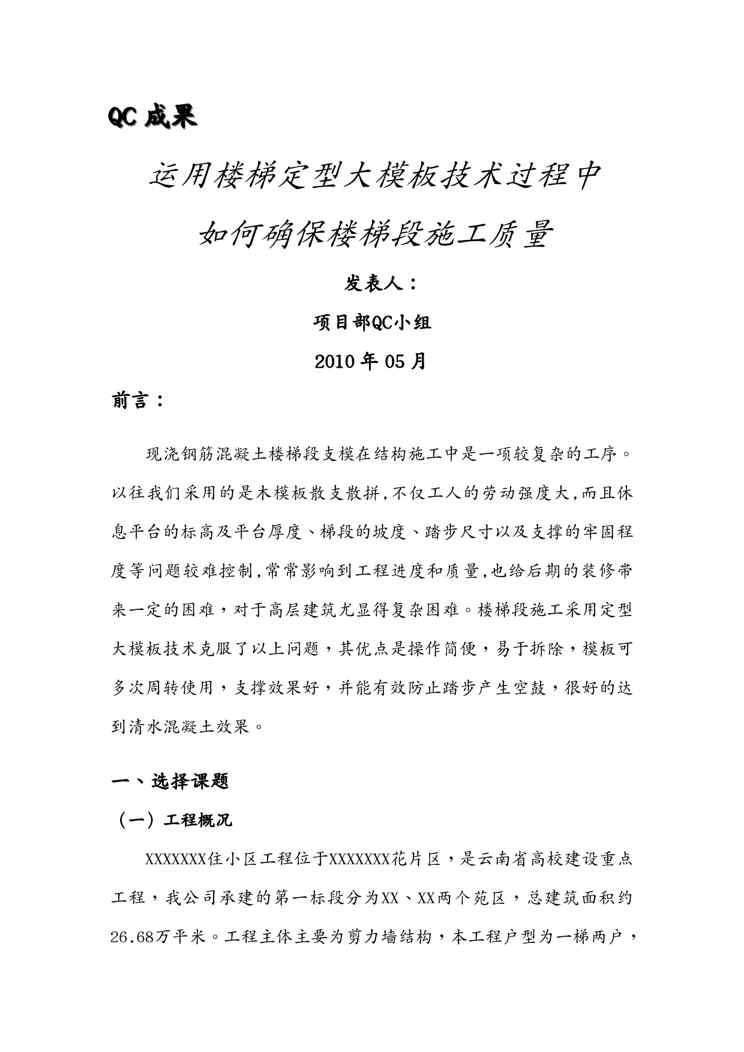 本站正式发布了《{品质管理Q七大手法}运用楼梯大模板如何确保楼梯段施工质量Q》文档,文档详细内容可下载阅读。 声明:本站所有文章,如无特殊说明或标注,均为本站原创发布。任何个人或组织,在未征得本站同意时,禁止复制、盗用、采集、发布本站内容到任何网站、书籍等各类媒体平台。如若本站内容侵犯了原著者的合法权益,可联系我们进行处理。