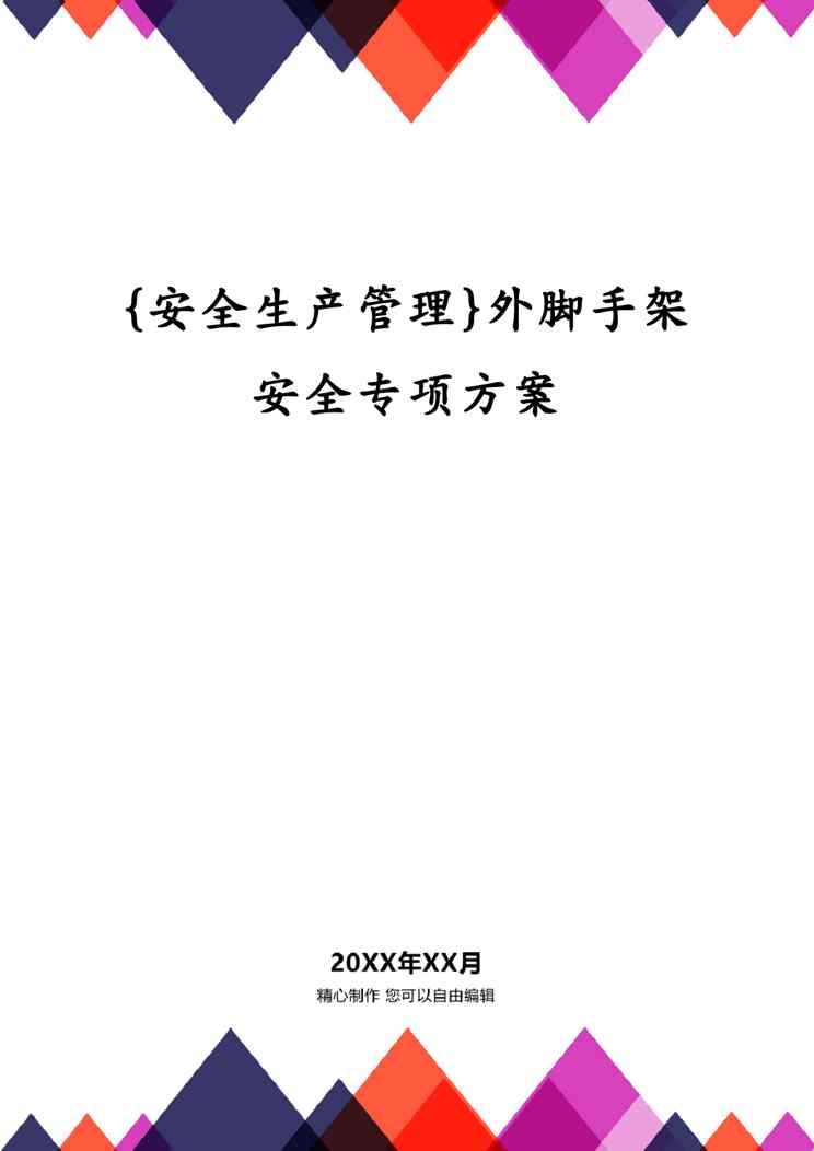 不久前,最新文档《{安全生产管理}外脚手架安全专项方案》全文正式在本站发布,感兴趣的用户可以下载阅读。 声明:本站所有文章,如无特殊说明或标注,均为本站原创发布。任何个人或组织,在未征得本站同意时,禁止复制、盗用、采集、发布本站内容到任何网站、书籍等各类媒体平台。如若本站内容侵犯了原著者的合法权益,可联系我们进行处理。