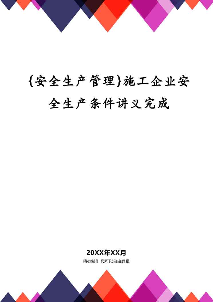 不久前,最新文档《{安全生产管理}施工企业安全生产条件讲义完成》全文正式在本站发布,感兴趣的用户可以下载阅读。 声明:本站所有文章,如无特殊说明或标注,均为本站原创发布。任何个人或组织,在未征得本站同意时,禁止复制、盗用、采集、发布本站内容到任何网站、书籍等各类媒体平台。如若本站内容侵犯了原著者的合法权益,可联系我们进行处理。