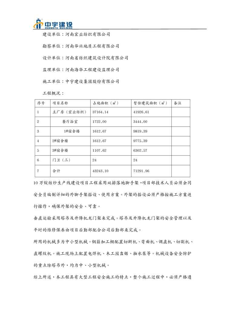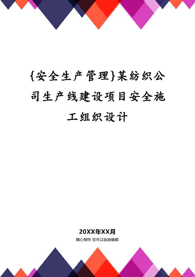 本站正式发布了《{安全生产管理}某纺织公司生产线建设项目安全施工组织设计》文档,文档详细内容可下载阅读。 声明:本站所有文章,如无特殊说明或标注,均为本站原创发布。任何个人或组织,在未征得本站同意时,禁止复制、盗用、采集、发布本站内容到任何网站、书籍等各类媒体平台。如若本站内容侵犯了原著者的合法权益,可联系我们进行处理。
