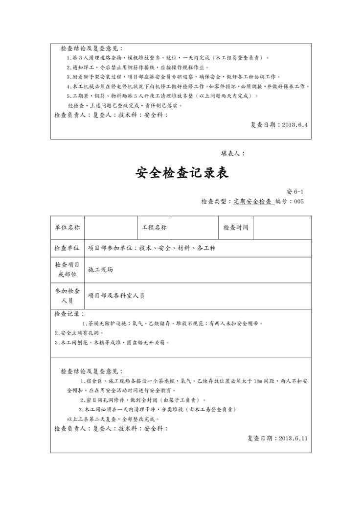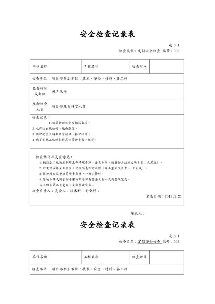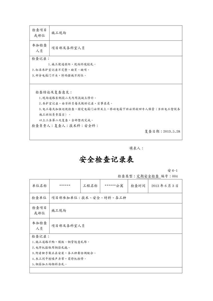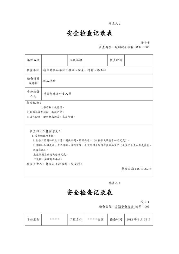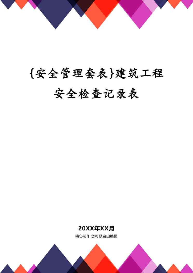 本站正式发布了《{安全管理套表}建筑工程安全检查记录表》文档,文档详细内容可下载阅读。 声明:本站所有文章,如无特殊说明或标注,均为本站原创发布。任何个人或组织,在未征得本站同意时,禁止复制、盗用、采集、发布本站内容到任何网站、书籍等各类媒体平台。如若本站内容侵犯了原著者的合法权益,可联系我们进行处理。