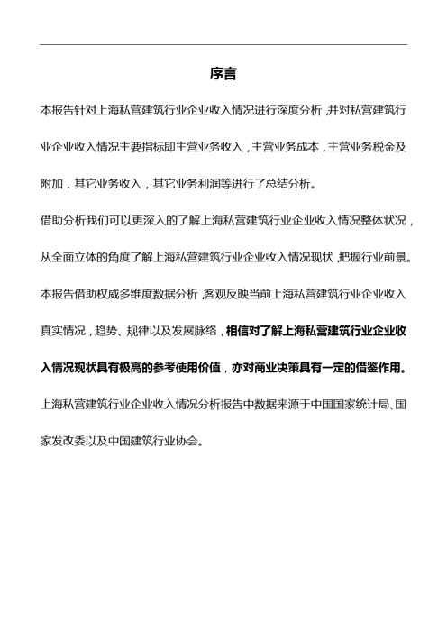 本站资深用户发布了最新的《2018版上海私营建筑行业企业收入情况分析报告》文档,以下内容为预览,详细内容可下载阅读。 声明:本站所有文章,如无特殊说明或标注,均为本站原创发布。任何个人或组织,在未征得本站同意时,禁止复制、盗用、采集、发布本站内容到任何网站、书籍等各类媒体平台。如若本站内容侵犯了原著者的合法权益,可联系我们进行处理。