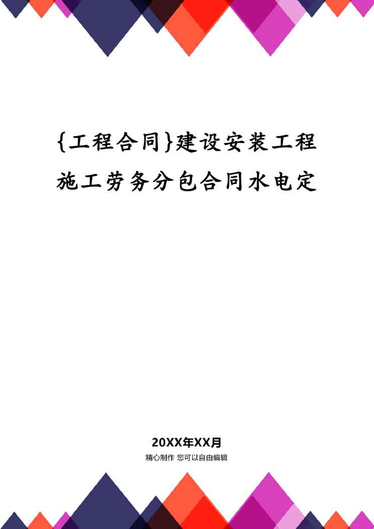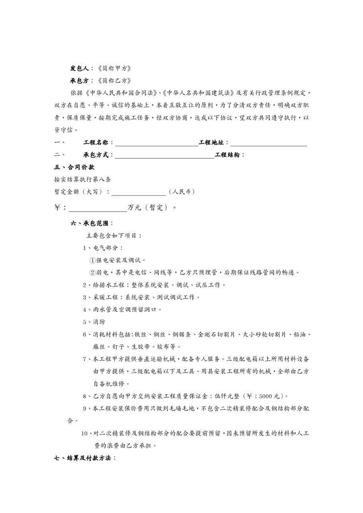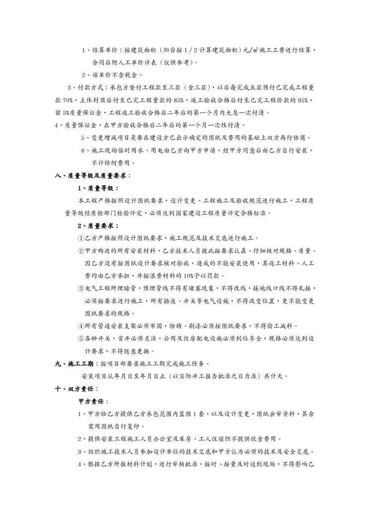 不久前,最新文档《{工程合同}建设安装工程施工劳务分包合同水电定》全文正式在本站发布,感兴趣的用户可以下载阅读。 声明:本站所有文章,如无特殊说明或标注,均为本站原创发布。任何个人或组织,在未征得本站同意时,禁止复制、盗用、采集、发布本站内容到任何网站、书籍等各类媒体平台。如若本站内容侵犯了原著者的合法权益,可联系我们进行处理。