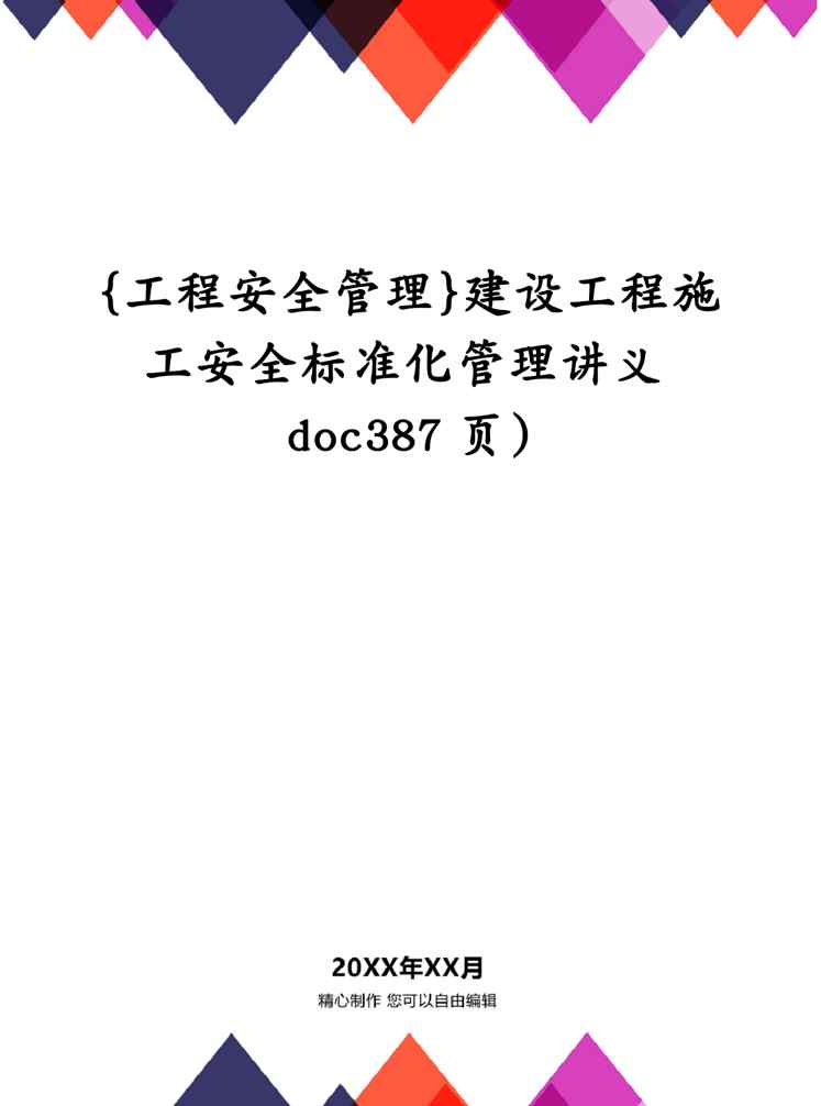 本站资深用户发布了最新的《{工程安全管理}建设工程施工安全标准化管理讲义doc387页)》文档,以下内容为预览,详细内容可下载阅读。 声明:本站所有文章,如无特殊说明或标注,均为本站原创发布。任何个人或组织,在未征得本站同意时,禁止复制、盗用、采集、发布本站内容到任何网站、书籍等各类媒体平台。如若本站内容侵犯了原著者的合法权益,可联系我们进行处理。