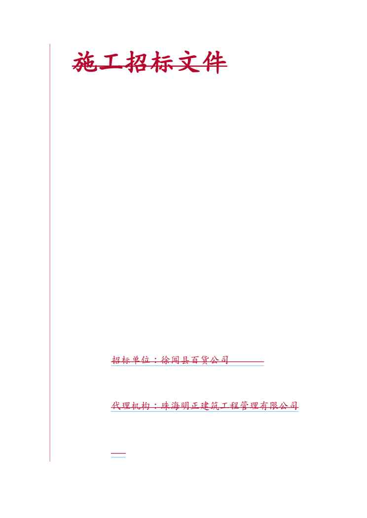 本站资深用户发布了最新的《{标书投标}徐闻县百货公司公租房建筑设项目施工招标文件范本》文档,以下内容为预览,详细内容可下载阅读。 声明:本站所有文章,如无特殊说明或标注,均为本站原创发布。任何个人或组织,在未征得本站同意时,禁止复制、盗用、采集、发布本站内容到任何网站、书籍等各类媒体平台。如若本站内容侵犯了原著者的合法权益,可联系我们进行处理。