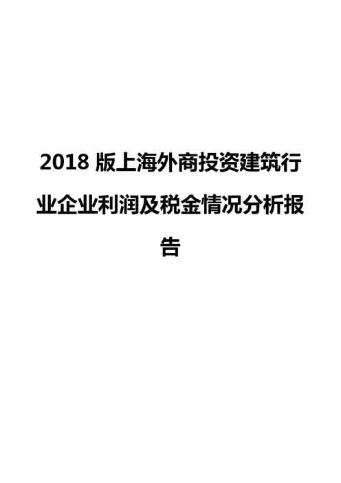 不久前,最新文档《2018版上海外商投资建筑行业企业利润及税金情况分析报告》全文正式在本站发布,感兴趣的用户可以下载阅读。 声明:本站所有文章,如无特殊说明或标注,均为本站原创发布。任何个人或组织,在未征得本站同意时,禁止复制、盗用、采集、发布本站内容到任何网站、书籍等各类媒体平台。如若本站内容侵犯了原著者的合法权益,可联系我们进行处理。