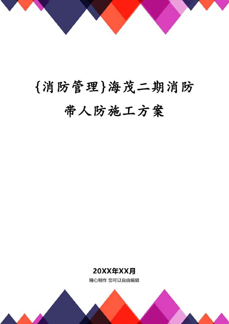 本站资深用户发布了最新的《{消防管理}海茂二期消防带人防施工方案》文档,以下内容为预览,详细内容可下载阅读。 声明:本站所有文章,如无特殊说明或标注,均为本站原创发布。任何个人或组织,在未征得本站同意时,禁止复制、盗用、采集、发布本站内容到任何网站、书籍等各类媒体平台。如若本站内容侵犯了原著者的合法权益,可联系我们进行处理。