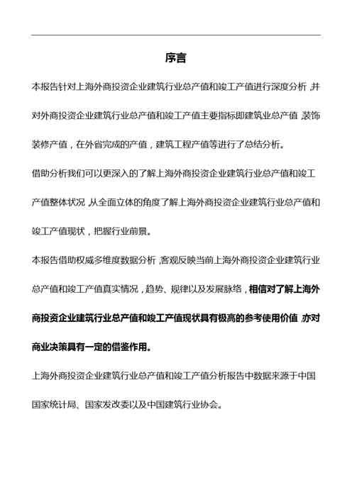 不久前,最新文档《2018版上海外商投资企业建筑行业总产值和竣工产值分析报告》全文正式在本站发布,感兴趣的用户可以下载阅读。 声明:本站所有文章,如无特殊说明或标注,均为本站原创发布。任何个人或组织,在未征得本站同意时,禁止复制、盗用、采集、发布本站内容到任何网站、书籍等各类媒体平台。如若本站内容侵犯了原著者的合法权益,可联系我们进行处理。