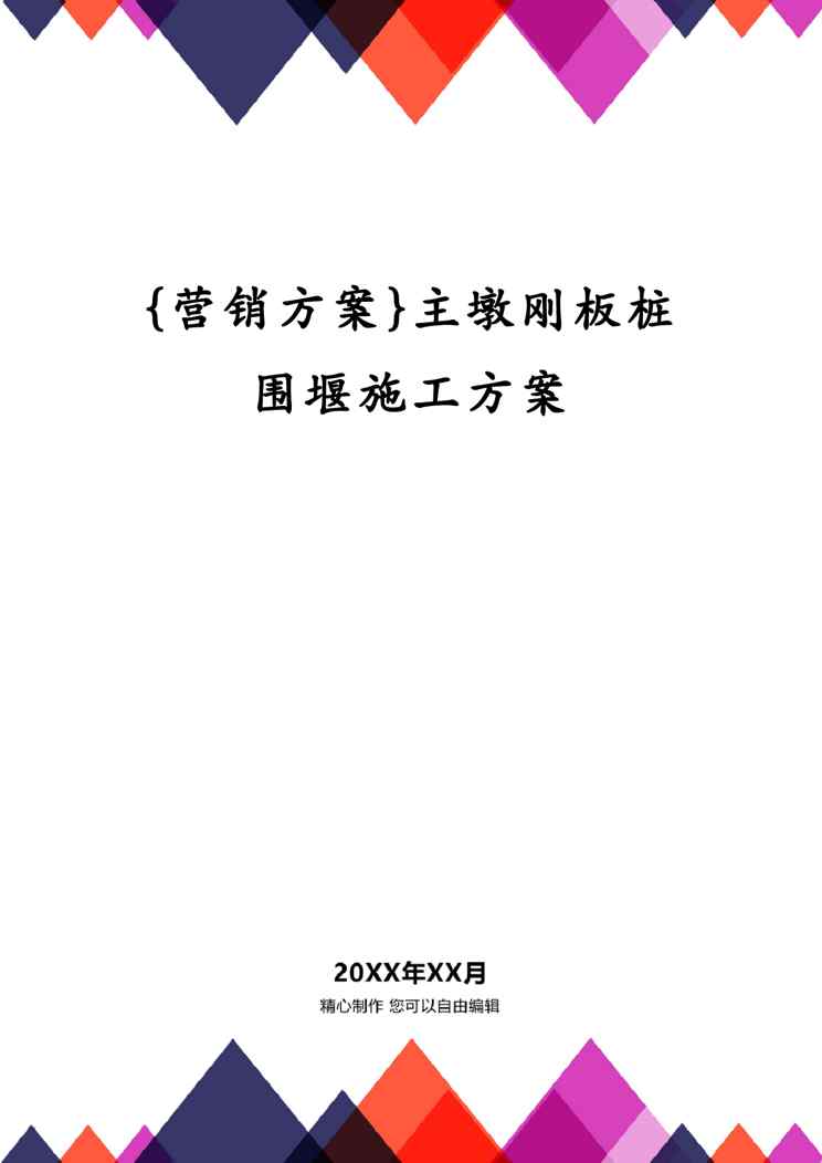 本站资深用户发布了最新的《{营销方案}主墩刚板桩围堰施工方案》文档,以下内容为预览,详细内容可下载阅读。 声明:本站所有文章,如无特殊说明或标注,均为本站原创发布。任何个人或组织,在未征得本站同意时,禁止复制、盗用、采集、发布本站内容到任何网站、书籍等各类媒体平台。如若本站内容侵犯了原著者的合法权益,可联系我们进行处理。