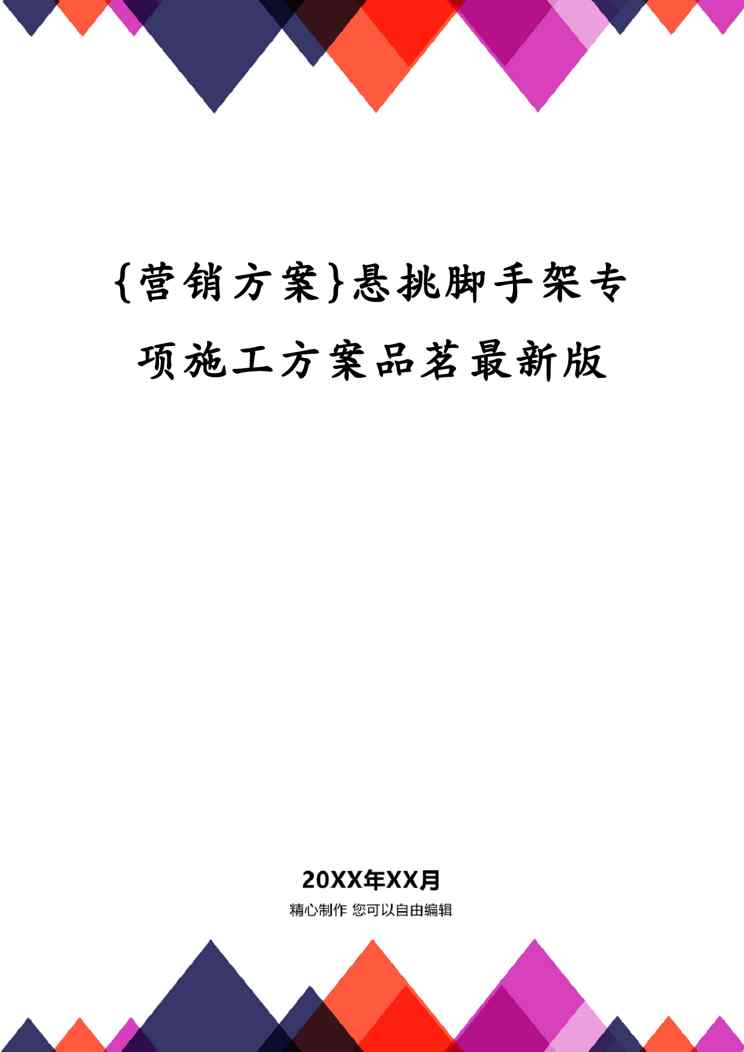 本站正式发布了《{营销方案}悬挑脚手架专项施工方案品茗最新版》文档,文档详细内容可下载阅读。 声明:本站所有文章,如无特殊说明或标注,均为本站原创发布。任何个人或组织,在未征得本站同意时,禁止复制、盗用、采集、发布本站内容到任何网站、书籍等各类媒体平台。如若本站内容侵犯了原著者的合法权益,可联系我们进行处理。