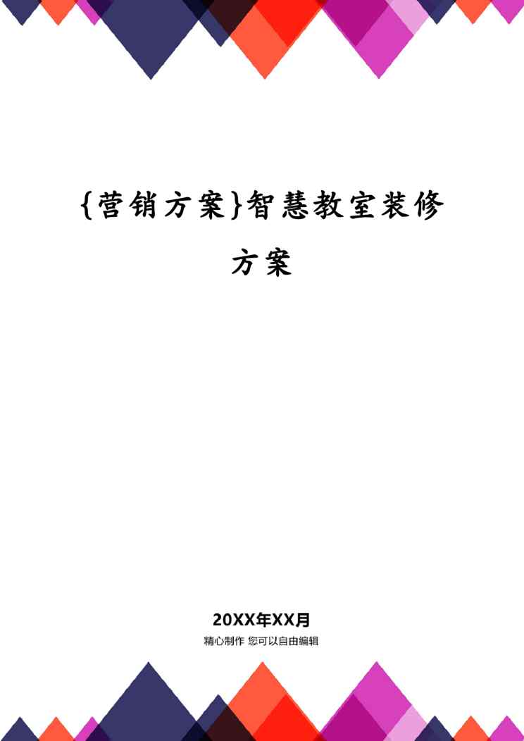 不久前,最新文档《{营销方案}智慧教室装修方案》全文正式在本站发布,感兴趣的用户可以下载阅读。 声明:本站所有文章,如无特殊说明或标注,均为本站原创发布。任何个人或组织,在未征得本站同意时,禁止复制、盗用、采集、发布本站内容到任何网站、书籍等各类媒体平台。如若本站内容侵犯了原著者的合法权益,可联系我们进行处理。