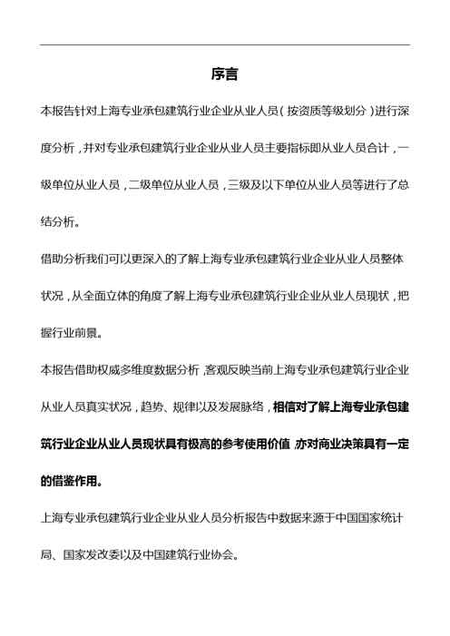 本站正式发布了《2018版上海专业承包建筑行业企业从业人员分析报告》文档,文档详细内容可下载阅读。 声明:本站所有文章,如无特殊说明或标注,均为本站原创发布。任何个人或组织,在未征得本站同意时,禁止复制、盗用、采集、发布本站内容到任何网站、书籍等各类媒体平台。如若本站内容侵犯了原著者的合法权益,可联系我们进行处理。