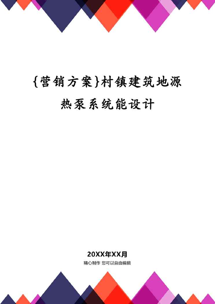 本站资深用户发布了最新的《{营销方案}村镇建筑地源热泵系统能设计》文档,以下内容为预览,详细内容可下载阅读。 声明:本站所有文章,如无特殊说明或标注,均为本站原创发布。任何个人或组织,在未征得本站同意时,禁止复制、盗用、采集、发布本站内容到任何网站、书籍等各类媒体平台。如若本站内容侵犯了原著者的合法权益,可联系我们进行处理。
